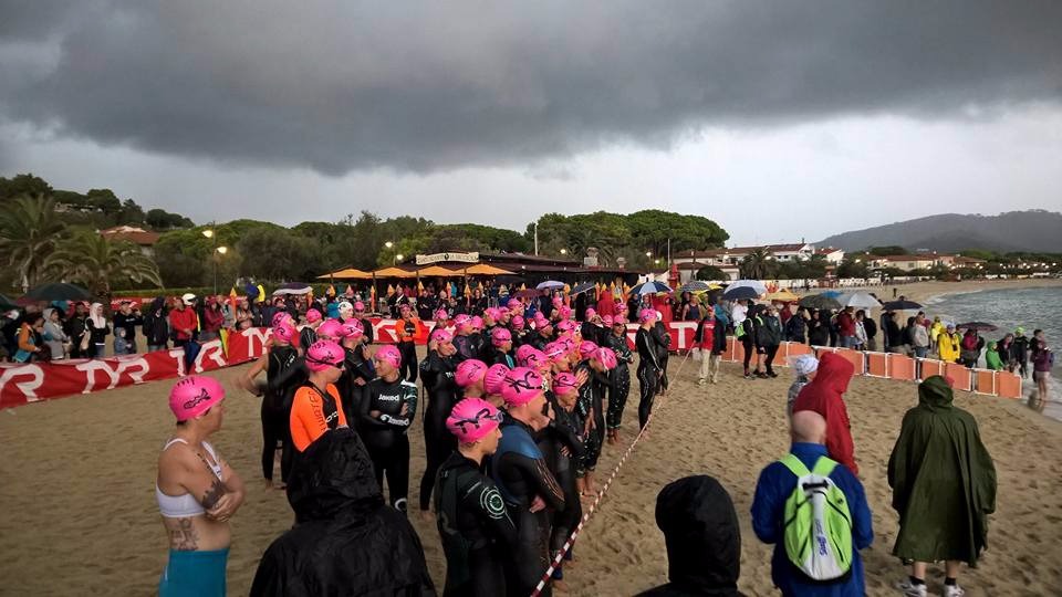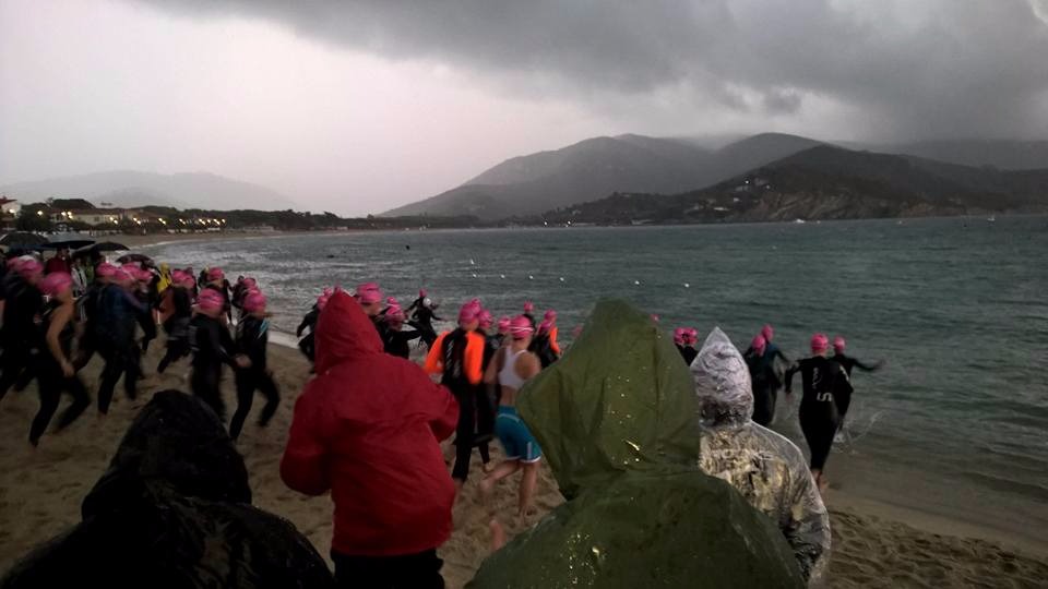 Elbaman 2017. Il fascino misterioso di un isola che piu di tutte profuma di sport e di amicizia. Una gara che si respira nell'aria e che unisce nell'anima altri 1000 atleti provenienti da ogni dove. E poco o nulla importa che non sia stata completata perche tu la senti ugualmente dentro, a prescindere dall'arco dell'arrivo e quello di partenza. Questa gara parte molto molto prima....gia' quando la pensi. Perché il nostro sport è uno stile di vita, é un modo di vedere le cose del mondo, é un approccio diverso alla natura e alle sue bellezze e infinite manifestazioni. E trovi affinità, approvazione e condivisioni in tutti quegli sguardi che incroci in giro per il paese e che sono li per fare il tuo stesso viaggio. E puoi anche non scambiarti una parola. Ti capisci solo nel guardarti. C'è rispetto e comprensione per chi come te ha scelto una disciplina che si consuma tra terra cielo e mare...che ne diventano i veri protagonisti e come tali vanno assecondati, amati e rispettati. E la sospensione della gara fa parte del gioco di rispetto e di amore. Ma in tutto questo io mi sento una privilegiata...per far parte di quel gruppo di atleti che hanno cominciato il viaggio e concluso la frazione nuoto in uno scenario surreale che difficilmente si incontra. La pioggia aveva una forza minacciosa da imprimersi per sempre nel cuore. I tuoni risuonavano come provenienti da un'altro mondo. Ho nuotato al buio sotto una pioggia impetuosa e incessante, senza mai perdere né la rotta né la calma. Concentrando le mie forze sul semplice gesto del nuotare e dell'avanzare. La visibilita era ridotta a zero. Era difficile respirare. Sentivo tutto concentrato li in quegli attimi. C'era un qualcosa di epico, di misterioso, di drammatico, di pauroso, di maestoso. Ogni tanto intravedevo una cuffia rosa (le altre donne 70.3) e altre verdi (gli ironman)....alcune erano praticamente ferme e si guardavano intorno....nessuno diceva niente a nessuno...anche perche il rumore del mare avrebbe coperto ogni parola. Ma il semplice incontrarsi ti faceva sentire bene. Nn si riusciva a rimanere in gruppo, il mare era arrabbiato, ti allontanava da tutti. Intravedevo le barchette dell'assistenza sopra le quali alcuni atleti trovavano riparo, i volontari avevano luci frontali...a loro ho urlato "dove é la prossima boa" e e proseguivo seguendo le loro indicazioni.....sembrava una scena tratta dal film "Titanic ". Al giro di Boa mi sono sentita piu leggera... ho performato una nuotata lenta e vigorosa, cercando di scivolare...e pensando ai consigli del giorno prima.....l'unico punto di luce era sotto il mare....dove nonostante la tempesta si intravedevano i pesci. Quando arrivo alla fine dei quasi 2 km.....e tocco con i piedi a terra.....do' uno sguardo all'orologio....ho perso completamente la percezione del tempo....per me poteva essere passata un'ora come un giorno....e mi accorgo che quel viaggio ha lasciato un’impronta che non si dissolverà mai più del tutto. E poi approdi sulla terra ferma. E li ci sono i tuoi compagni d'avventura che ti fermano e ti festeggiano. C'e' il tuo mondo. I tuoi amici. La tua famiglia. E ci sono i sorrisi. Le nuotate. Le corse. Le pedalate. Le cene, i gelati, gli scorci sul mare, le foto, i pesci, i bungalow tutti allineati....il profumo del mare.